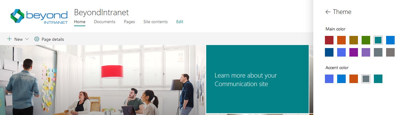 This attractive SharePoint Site theming option allows user to apply custom or default themes to all Modern sites (Communication or Team sites) to deliver new engaging and familiar looks.